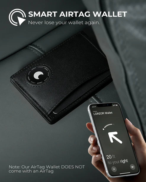 The Lorzor Slim Leather AirTag Wallet redefines traditional wallets with a sleek design, AirTag compatibility, and advanced RFID protection — all in one compact bifold package.