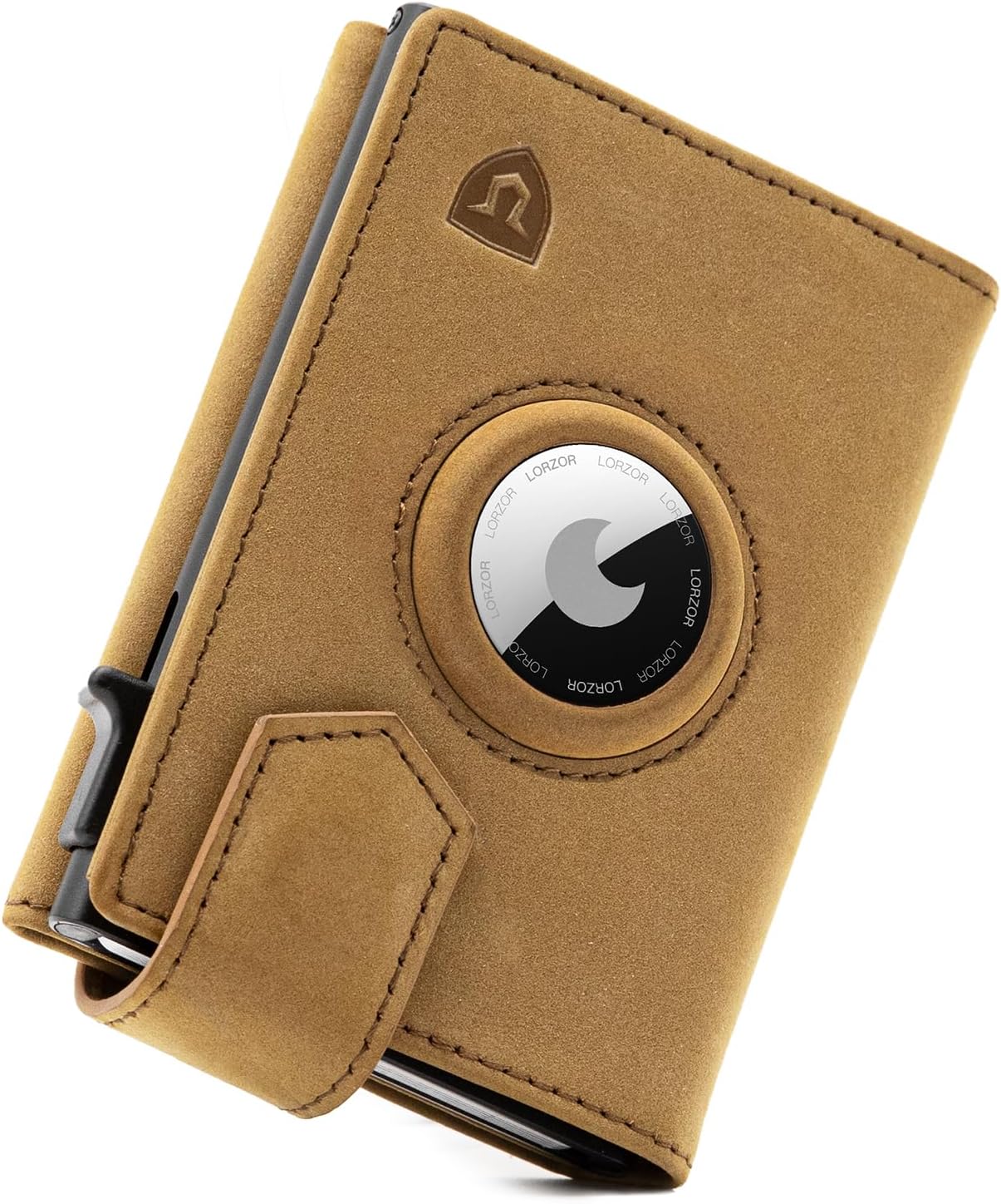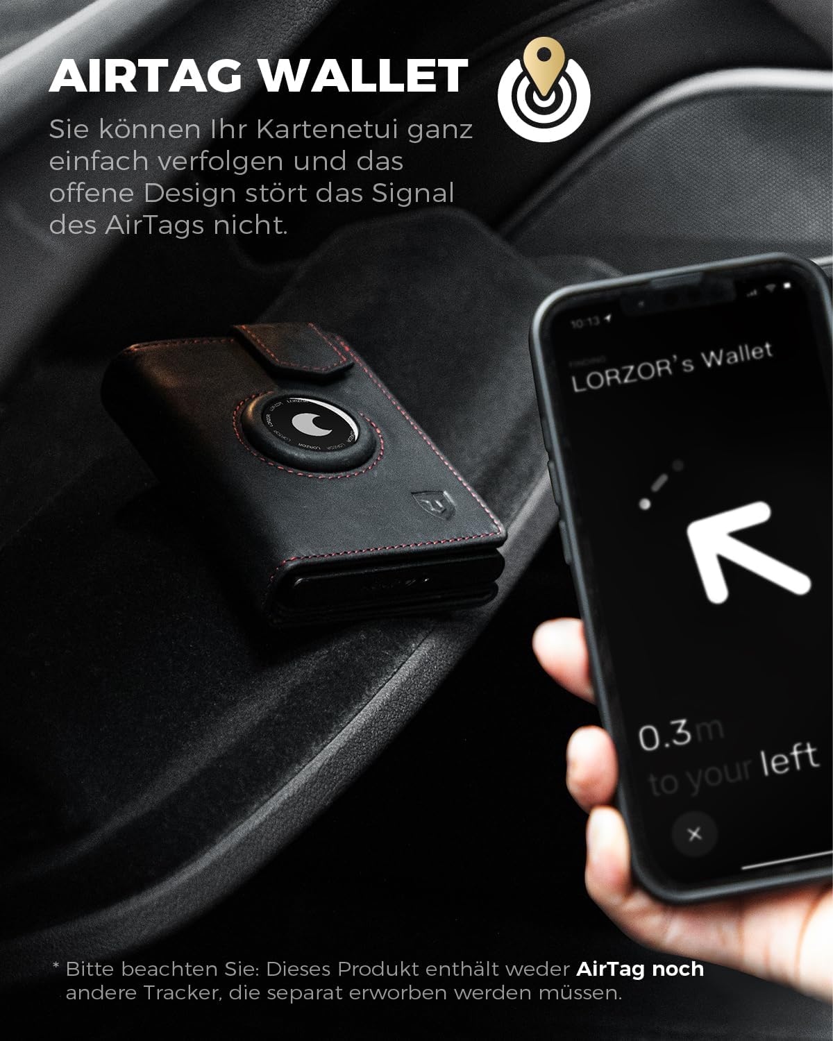 LORZOR Trifold Airtag Wallet with Aluminum Card Holder