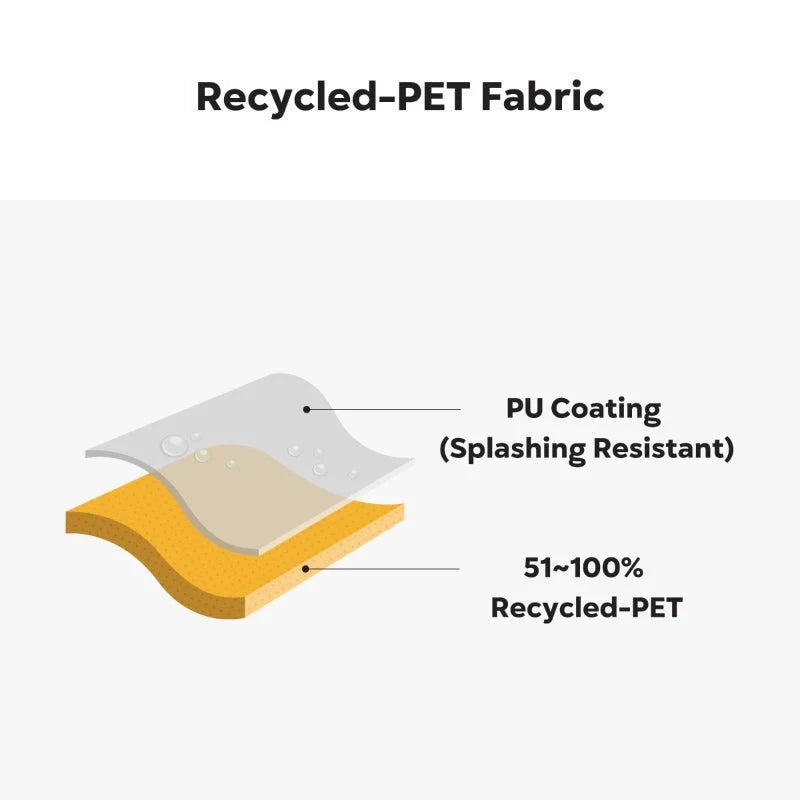 The exterior and interior are made entirely from recycled PET plastic bottles. Durable, lightweight, and globally certified (GRS).